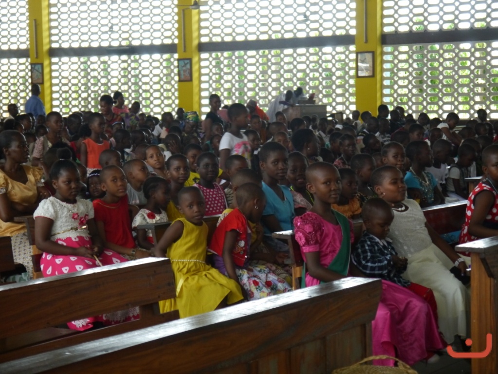 Die Kindermesse am Sonntag. Die meisten dieser Kinder kommen aus dem Armenviertel. In der Pfarrei können sie sich treffen und helfen sich gegenseitig für die Schule.